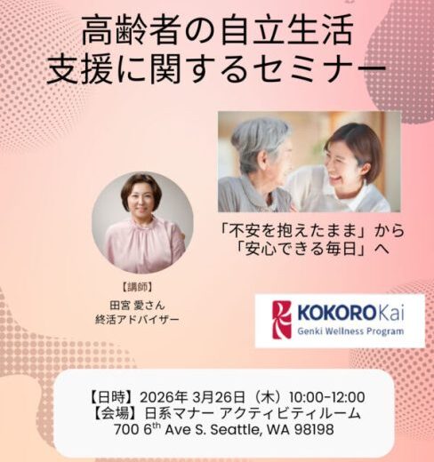 - 高齢者の自立生活支援セミナー FacebookTwitter シアトルのサービス付き高齢者向け住宅、...