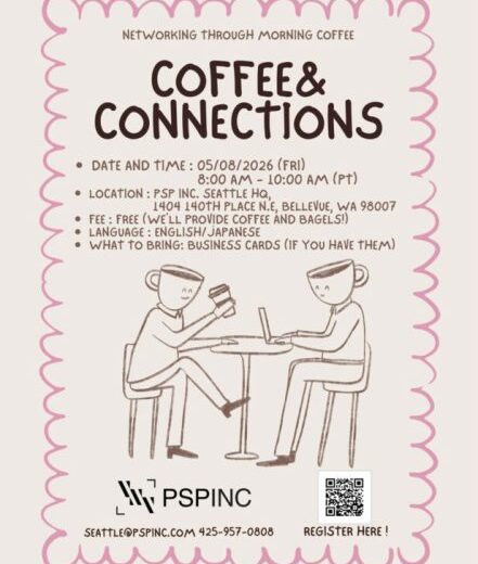 - PSPINC主催「シアトルビジネス交流会 コーヒーコネクト」 FacebookTwitter ベルビューのPSPINCが、朝のビジネス交流会...