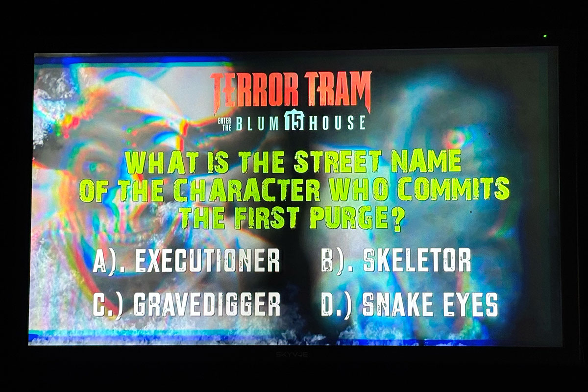 「Halloween Horror Nights」の目玉のひとつが、ユニバーサル・スタジオ名物のトラムツアー。普段は映画セットやアトラクションを巡るだけのツアーですが、この期間中はホラー仕様に大変身!今回は Blumhouse Productions(ブラムハウス)の世界観をまとい、新たな恐怖旅路として登場。