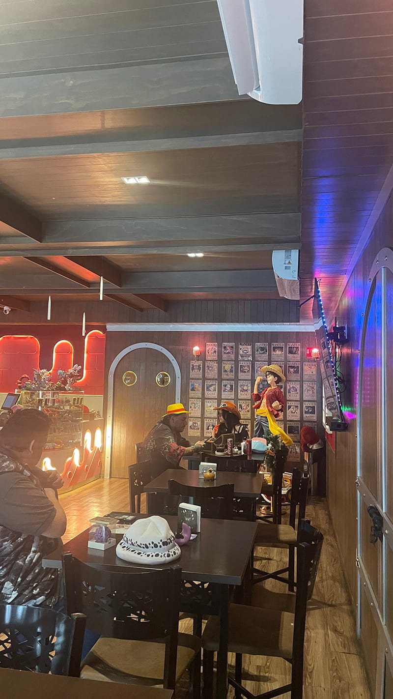 「Hachi Coffee & Tea」の最大の魅力は、まるで麦わらの一味と一緒に冒険しているかのような店内の装飾です✨海賊船や島々をモチーフにした内装は、細部までこだわりが感じられます。壁には船の窓が設えられ、テーブルには雲の島を再現した装飾も。