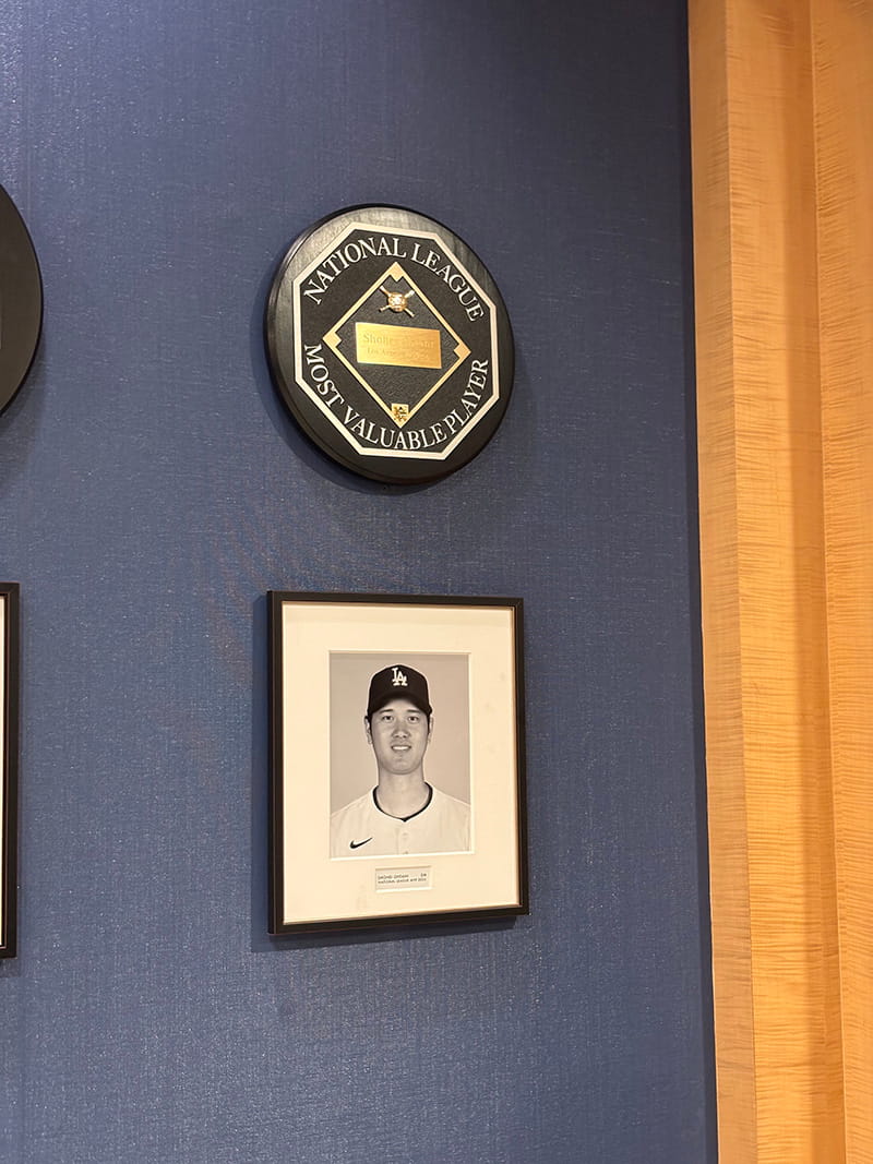 ・ドジャースの歴史や功績、トロフィーが展示されているエリア