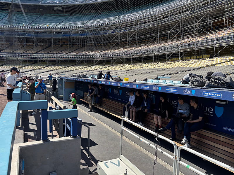 通常はホームベンチではない側のベンチを見学するそうですが、この日はたまたま関係者がいなかったため、ドジャースのホームベンチに入ることができました。 さらに、大谷選手が普段座っている席にも座ることができ、非常に貴重な体験となりました!