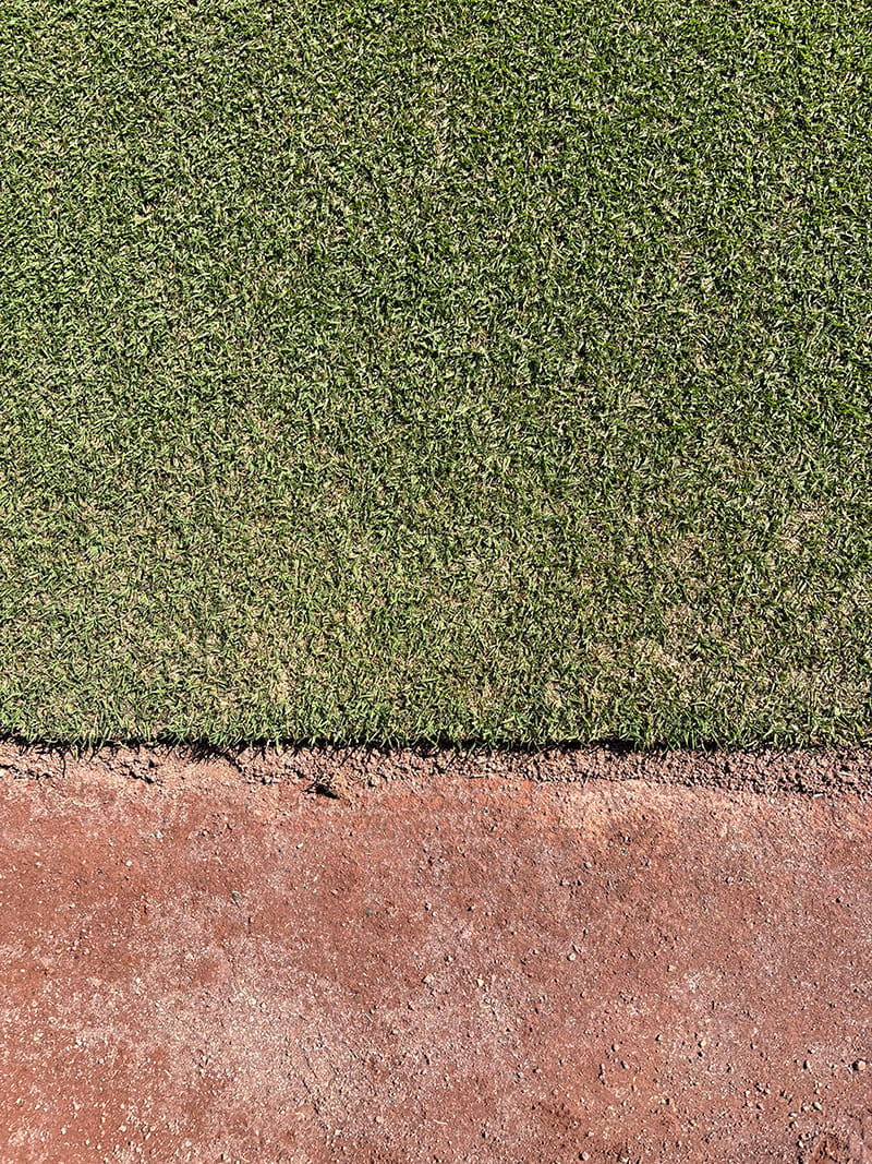 グラウンドでは芝生への立ち入りは禁止されており、周囲の赤土部分を歩いて見学します。